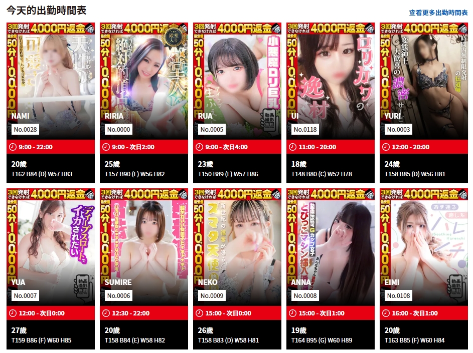 店鋪靈魂: 全店擁有近 80 名在籍女孩,年齡集中在 18 至 22 歲。這裡主打的是「制服誘惑」,從水手服到西裝校服,應有盡有。